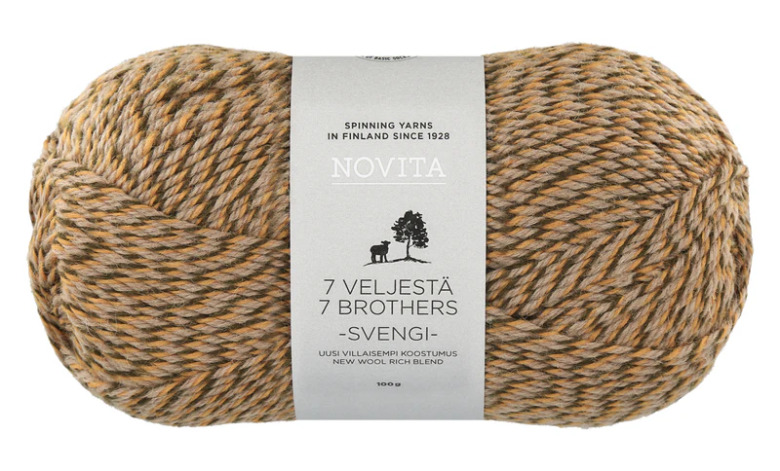 Novita 7 Veljestä Svengi är en svängig nykomling i den älskade 7 Veljestä-familjen. Garnet har trådar av olika färger som gör den stickade ytan levande och jämnt flerfärgad. 7 Veljestä Svengi består av 80 % värmande ull och 20 % polyamid som gör garnet mer hållbart. Tack vare garnets sammansättning och bra tvinning passar det utmärkt till stickade plagg och accessoarer samt kan användas som sockgarn. Prova också att kombinera Novita 7 Veljestä Svengi med enfärgade 7 Veljestä-garn. Ett nystan räcker till vanliga sockor i storlek 38. Garnet kan tvättas i maskin i 40 grader. Stickrekommendation 4, till sockor 3,5. I ett nystan pa? 100 gram finns 200 meter garn. Novita 7 bröder är en Nyckelflaggsprodukt.