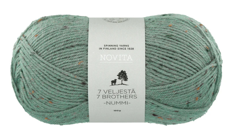 Novita 7 bröder Nummi är ett grovt garn med en levande yta som ingår i 7 bröder-garnfamiljen. Färgkornen i garnet gör sockor och störrre stickarbeten härligt levande. Garnet består av 76 % ull, 20 % polyamid och 4 % viskos. Stickrekommendation 4, till sockor 3,5. Ett nystan räcker till vanliga sockor i storlek 38. Garnet kan tvättas i maskin i 40 grader. I ett nystan pa? 100 gram finns 200 meter garn. Novita 7 Bröder Nummi-garnet är tillverkat i Finland.