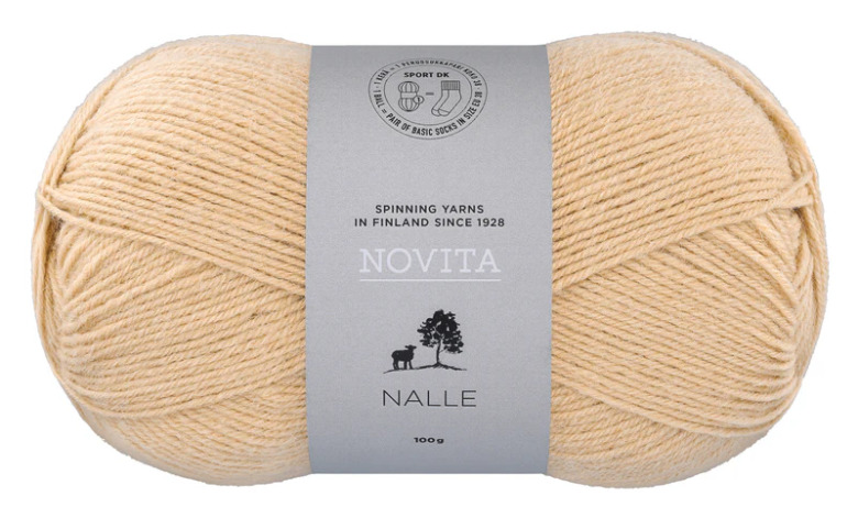 Novita Nalle är en riktig klassiker som är ett av finländarnas favoritgarn sedan decennier. Det månganvändbara Nalle-garnet passar till stickade plagg och accessoarer och är ett utmärkt garn för sockor. Nu har andelen ull ökats i sammansättningen, vilket gör det ännu fluffigare och behagligare att sticka med. Garnet består av 80 % värmande ull och 20 % polyamid som gör garnet mer hållbart. Till ett stickat plagg i storlek M behövs ca 500 g garn, och ett nystan räcker till vanliga sockor i storlek 38. Nalle-garnet kan tvättas i maskin i 40 grader. Stickrekommendation är 3,5, till sockor 3. I ett nystan på 100 gram finns 260 meter garn. Novita Nalle är en Nyckelflaggsprodukt.