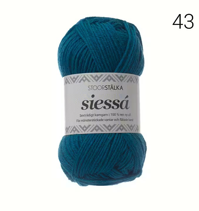 Siessá är vårt sextrådiga kamgarn för läggning (flätning), stickning och vävning. Siessá är en vidareutveckling av vårt fina Áhkko-garn, i en tjocklek som passar bra för läggning av skoband, mönsterstickning av vantar och mössor, och som mönstertrådar vid vävning.