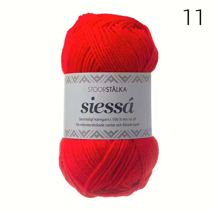 Siessá är vårt sextrådiga kamgarn för läggning (flätning), stickning och vävning. Siessá är en vidareutveckling av vårt fina Áhkko-garn, i en tjocklek som passar bra för läggning av skoband, mönsterstickning av vantar och mössor, och som mönstertrådar vid vävning.