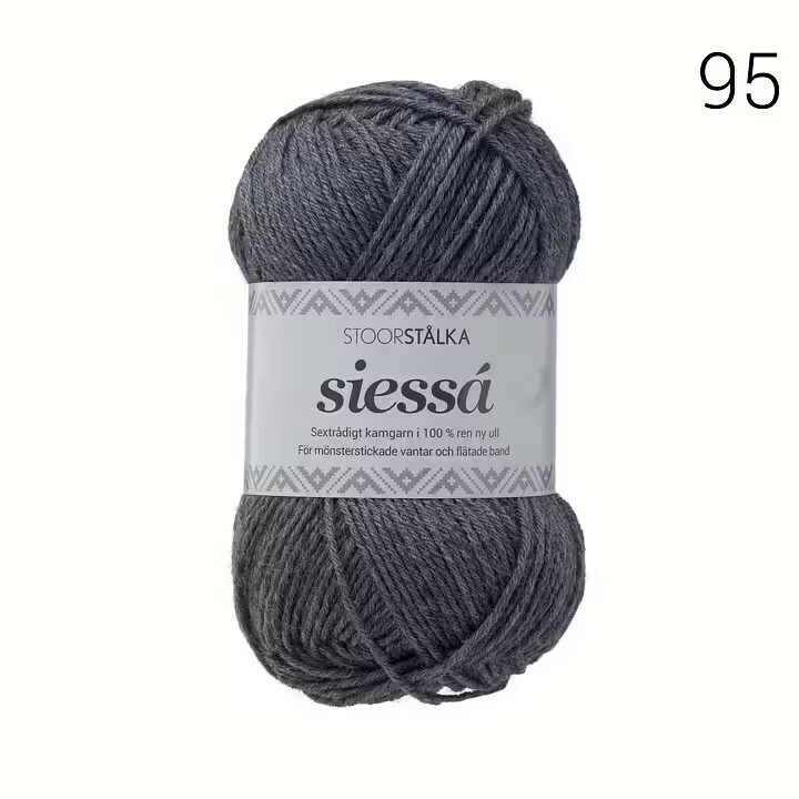 Siessá är vårt sextrådiga kamgarn för läggning (flätning), stickning och vävning. Siessá är en vidareutveckling av vårt fina Áhkko-garn, i en tjocklek som passar bra för läggning av skoband, mönsterstickning av vantar och mössor, och som mönstertrådar vid vävning.